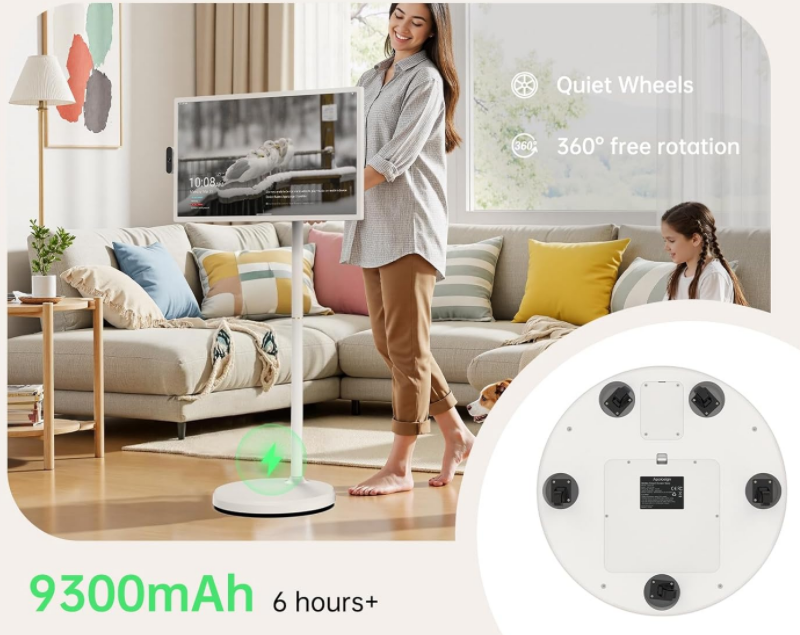 The APIO 24-inch 1080P Portable Smart Touch Screen Monitor is an all-in-one device that combines entertainment, productivity, and lifestyle functionality in a single solution. Equipped with a built-in battery, mobile stand with wheels, and robust performance, it is ideal for home, office, education, and commercial applications.