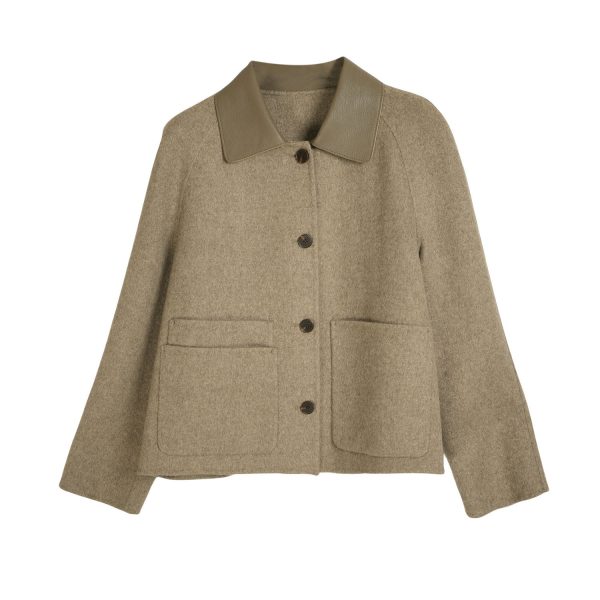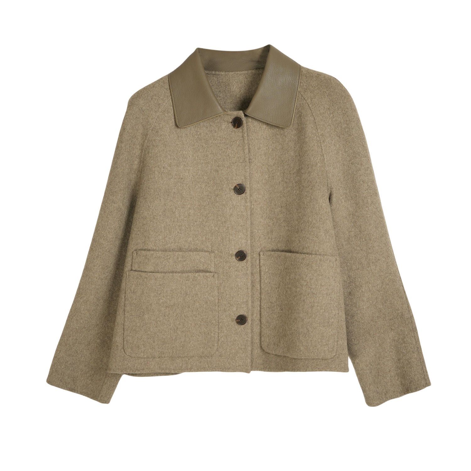 Cashmere Jacket The popular door closing collar with shoulder inserted H-shaped design has strong inclusiveness. Leather collar design adds layering and texture to details. Double row pocket design adds a bit of fun and won't be monotonous or boring.