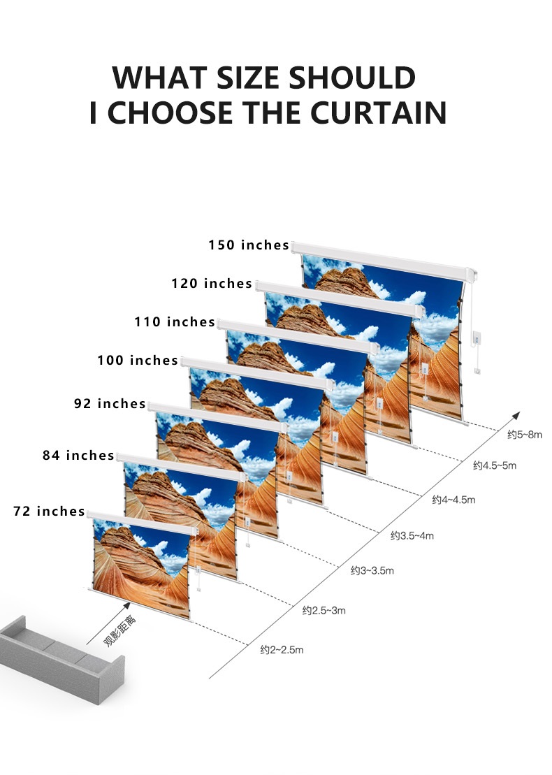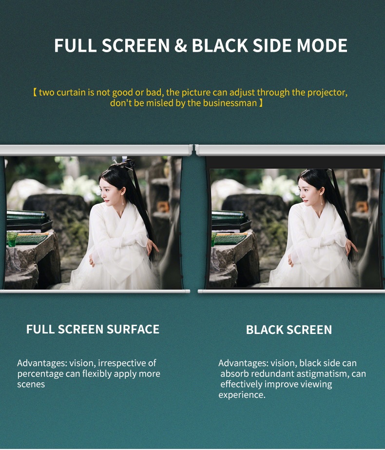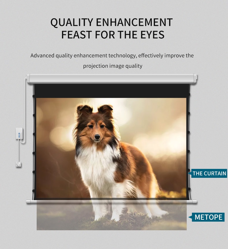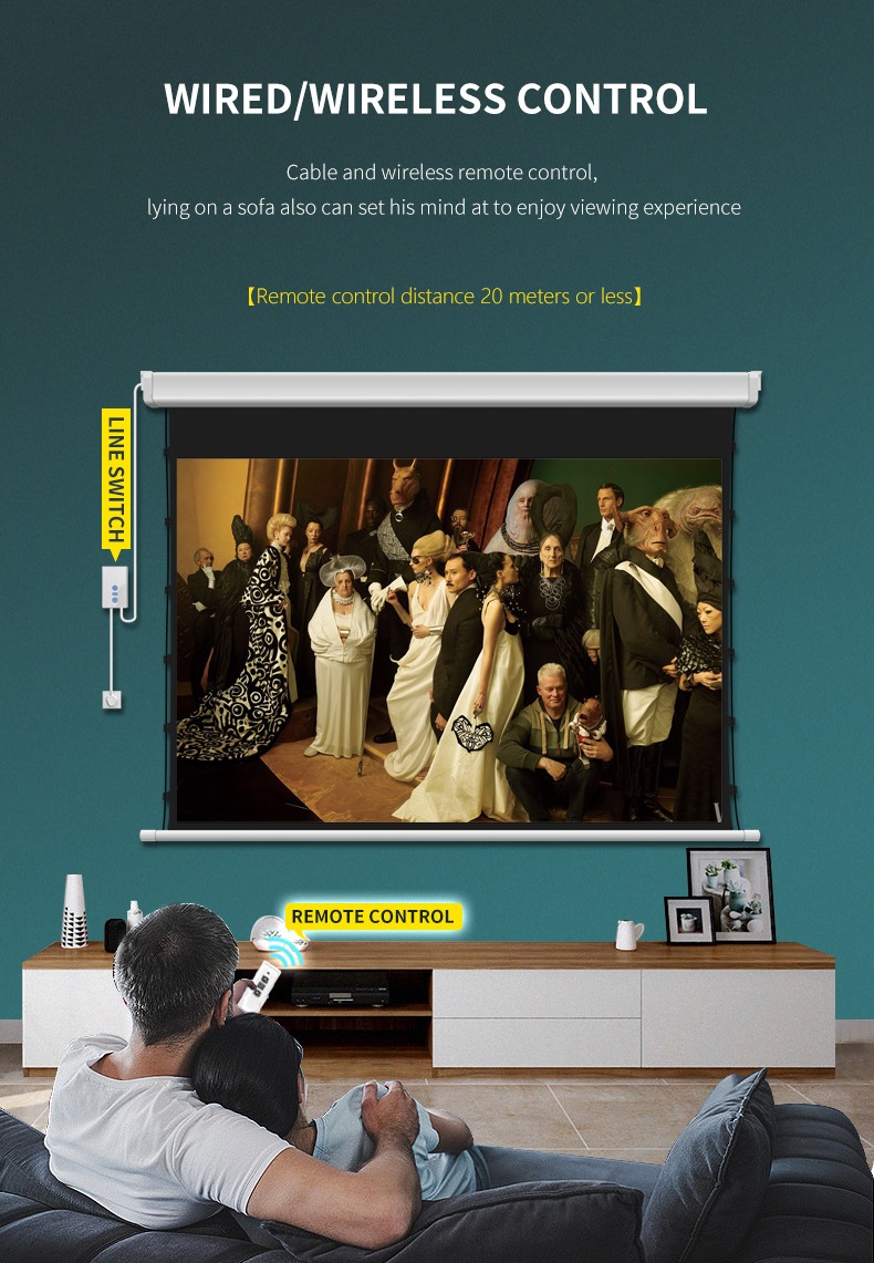 1, Upmarket projection screens, add elegance to where they mounted;2, Can be tensioned to present smooth image surface;3, Wired control or motorized control available;