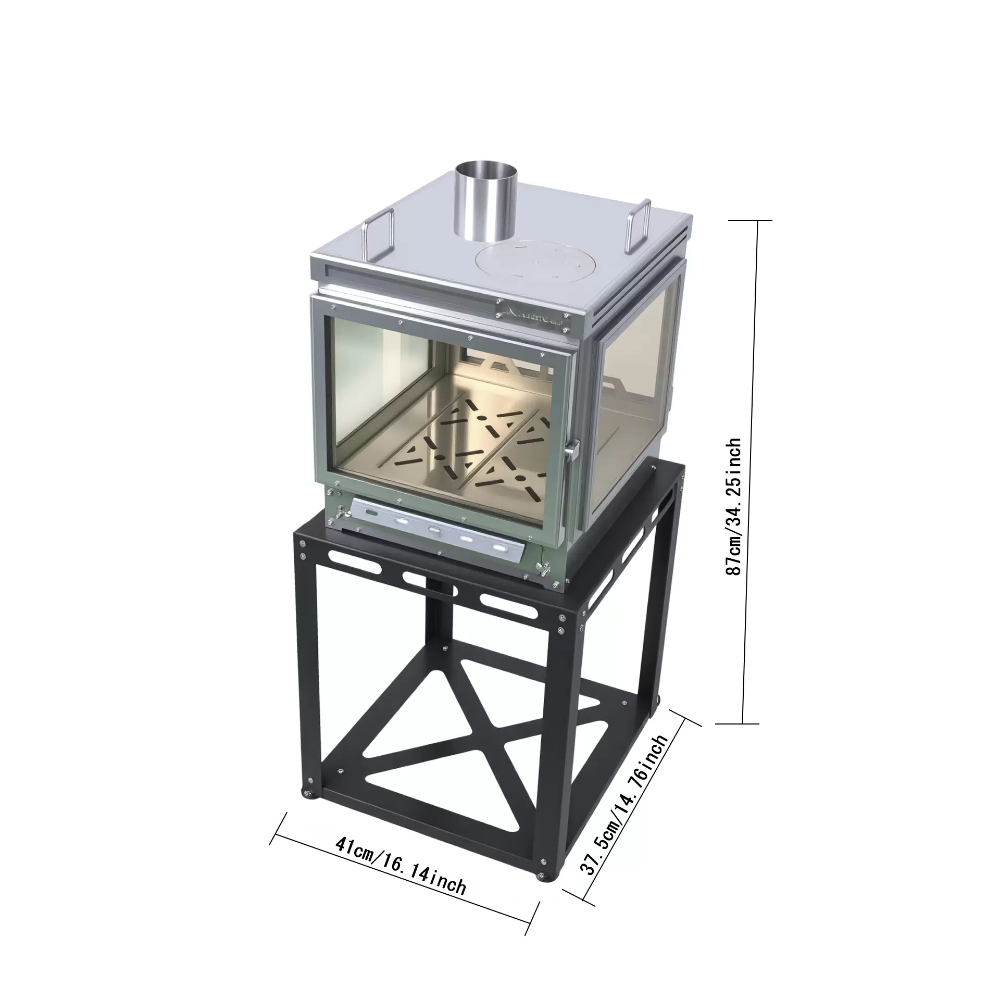 The standard base addresses two major user pain points: it elevates the stove, preventing direct contact with flammable tent material and enhancing safety; and it serves as a storage frame, keeping the long chimney pipes organized during transport and storage, preventing loss of parts and clutter.