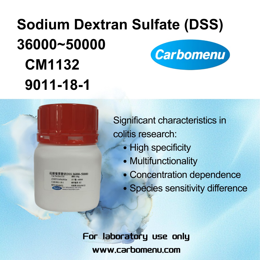 DSS is a polyanionic dextran derivative (esterification of dextran with chlorosulfonic acid). The 36,000~50,000 Da grade is the "gold standard" for inducing inflammatory bowel disease (IBD, especially ulcerative colitis, UC) models in laboratory animals. Since 1985, it has been widely used in preclinical drug development and IBD pathogenesis research for reliability.